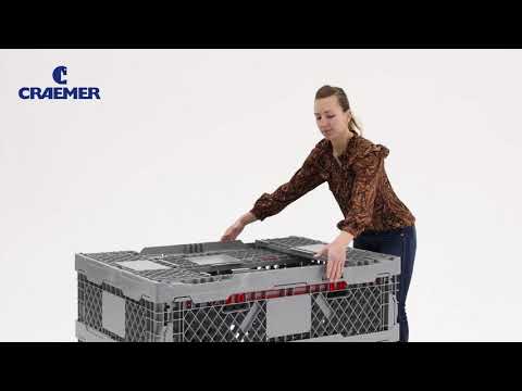 Der durchdachte Klappmechanismus des Euro-Palettenaufsatzrahmens von Craemer wird mit einem einfachen Handgriff ausgelöst – dank beweglicher Verriegelungselemente. Zusammengeklappt reduziert sich das Volumen des CC1 um 75 Prozent. Die aufeinandergestapelten Rahmen können somit platzsparend transportiert werden, ausgeklügelte Arretierungselemente am Boden sorgen dabei für Rutschsicherheit – auch im aufgeklappten Zustand. Klebefelder für Etiketten und integrierte Transponderhalterungen runden den Palettenaufsatzrahmen von Craemer ab.