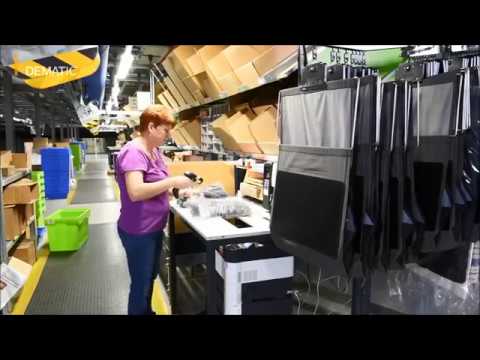 Dematic Pouch Sorter is a flexible storage system that consists of pouches suspended from rolling adapters running in a track. Each pouch carries a single item, which can be identified by its radio frequency identification (RFID) tag. Items of various types can go into the pouches, including folded garments, shoeboxes, accessories, books and general merchandise.