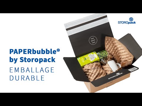 PAPERbubble® offre aux clients de Storopack une alternative innovante et écologique au film à bulles d’air traditionnel. L’emballage de protection en papier, matière première renouvelable, associé à l’air, est 100% recyclable et protège de manière fiable les marchandises de petite et moyenne taille pendant le transport, réduisant ainsi l’utilisation de matières premières primaires et de ressources fossiles. PAPERbubble® est idéal pour combler les vides, envelopper et rembourrer les produits dans des industries cosmétiques et pharmaceutiques, les composants électroniques et généralement pour expédier en toute sécurité tous les produits vendus en ligne. Un avantage supplémentaire est que PAPERbubble® donne aux produits une apparence élégante et unique dans le carton d’expédition, créant une expérience de déballage positive et inoubliable pour le client final.
